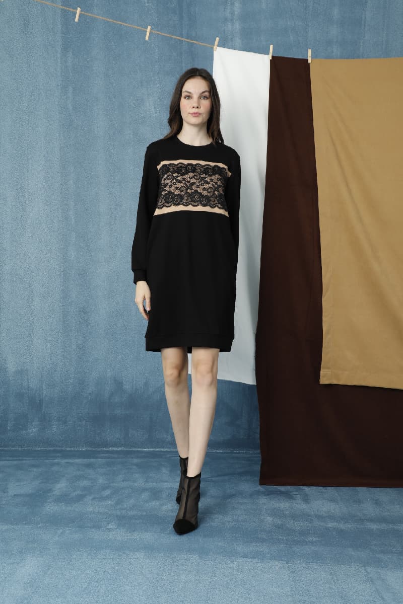 Kadın Dantel Detaylı Uzun Kol Elbise