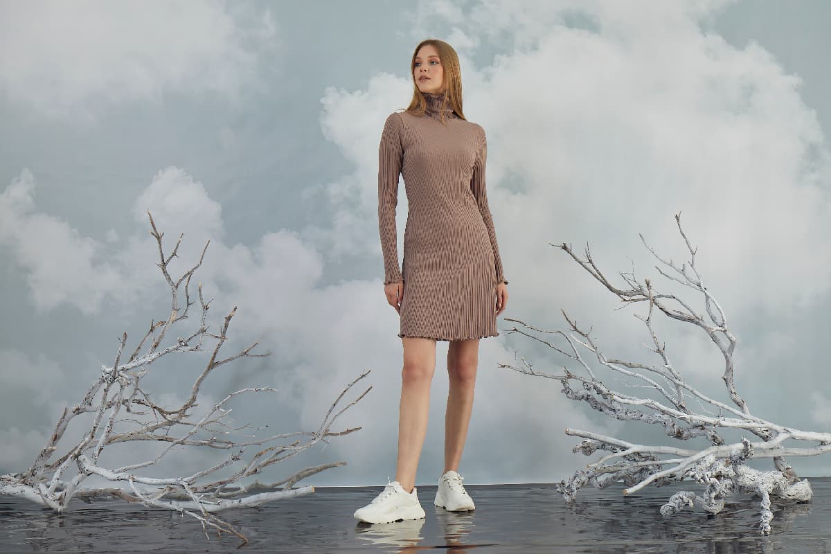 Kadın Boğazlı Yaka Uzun Kol Elbise
