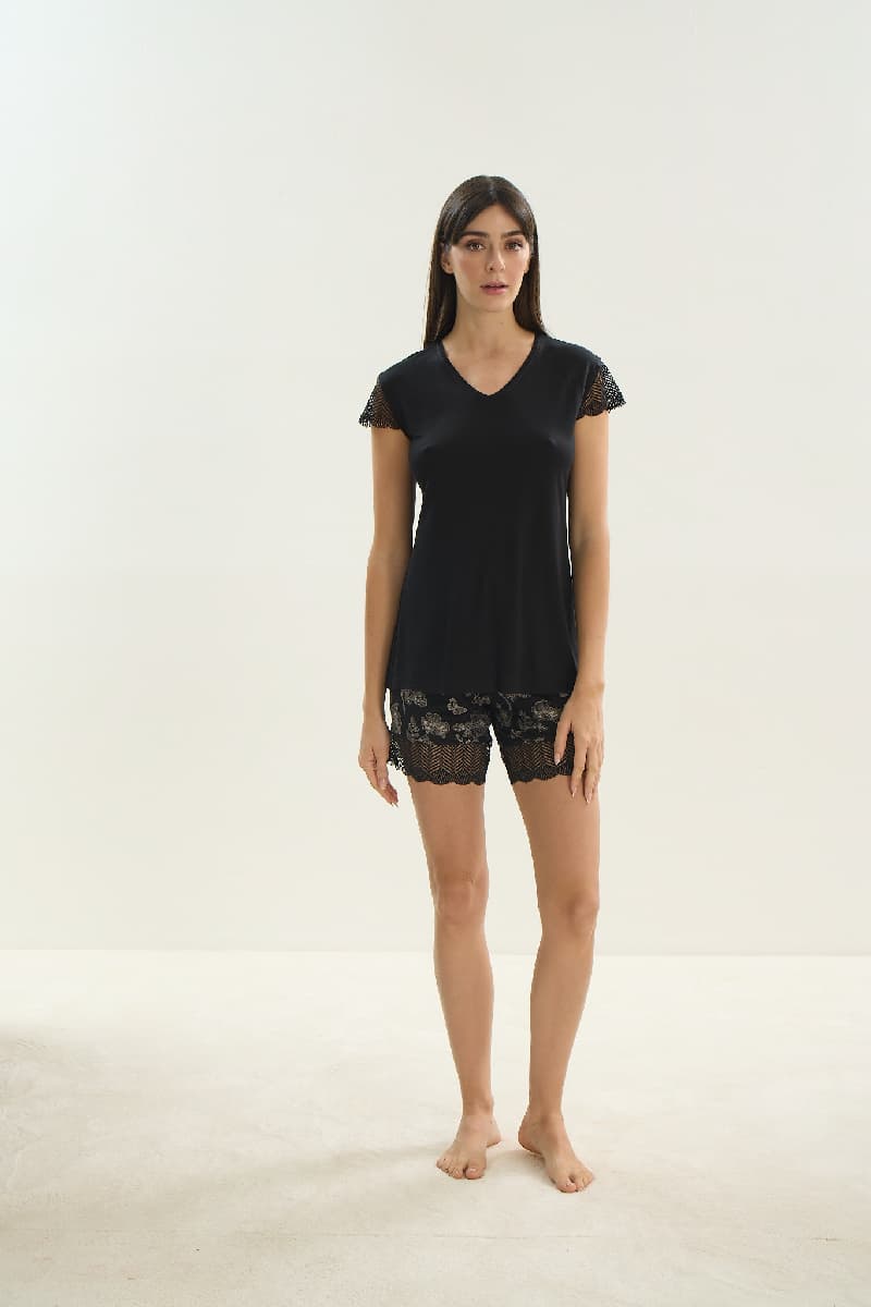 Kadın Dantel Detaylı V Yaka Şort Takım