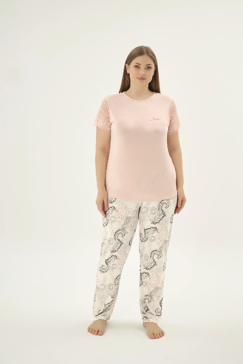 16917 KADIN TAŞ BASKILI BIG SIZE PİJAMA TAKIM