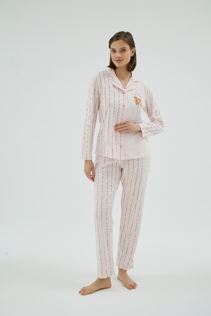 16938 KADIN BASKILI DÜĞMELİ PİJAMA TAKIM