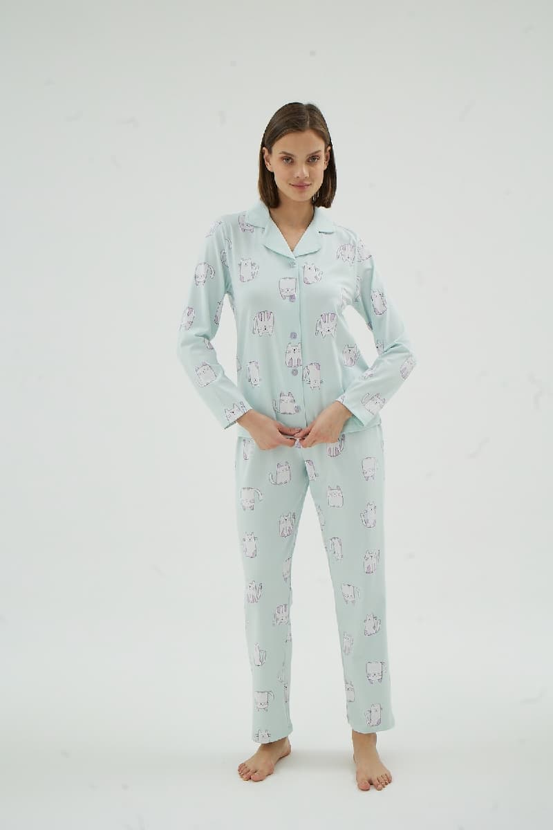 17090 KADIN DÜĞMELİ PİJAMA TAKIM