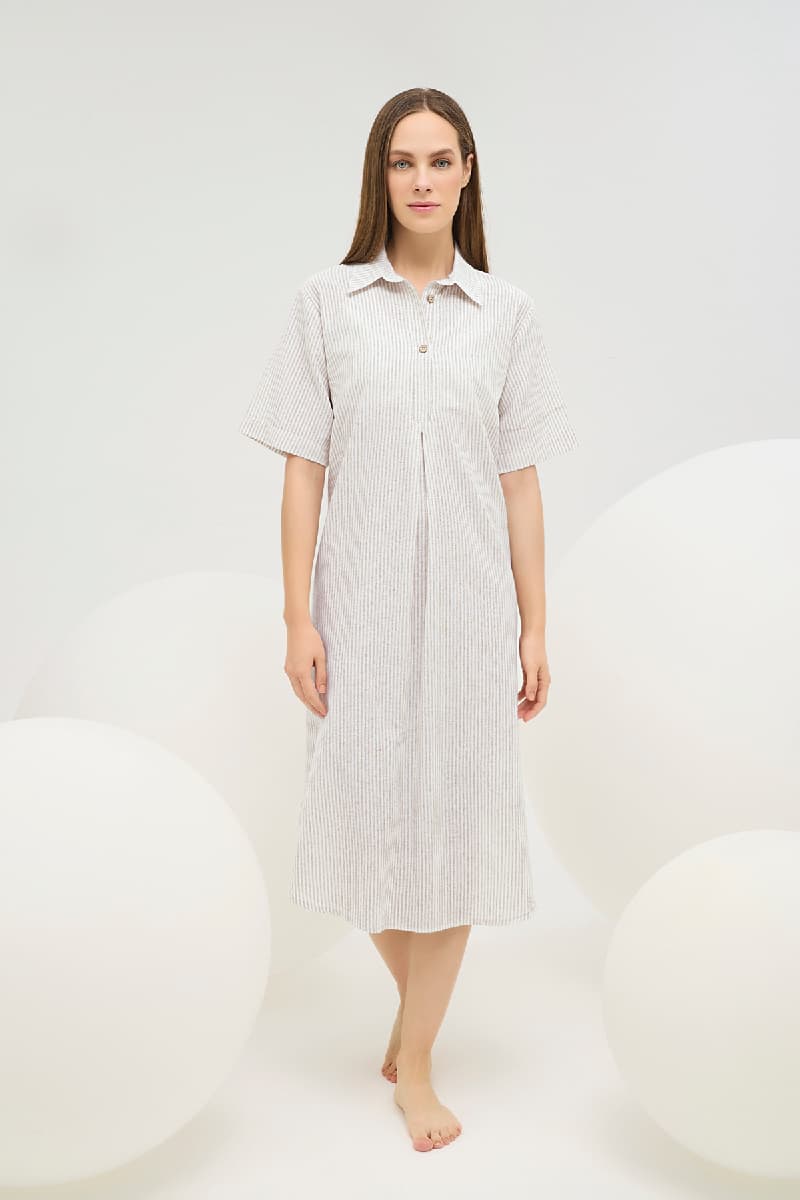 16685 Kadın Gömlek Yaka Midi Boy Elbise