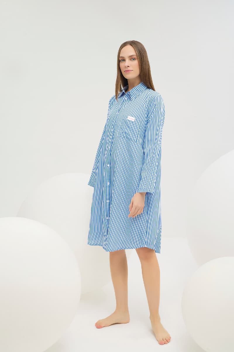 16729 Kadın Düğmeli Gömlek Yaka Gecelik