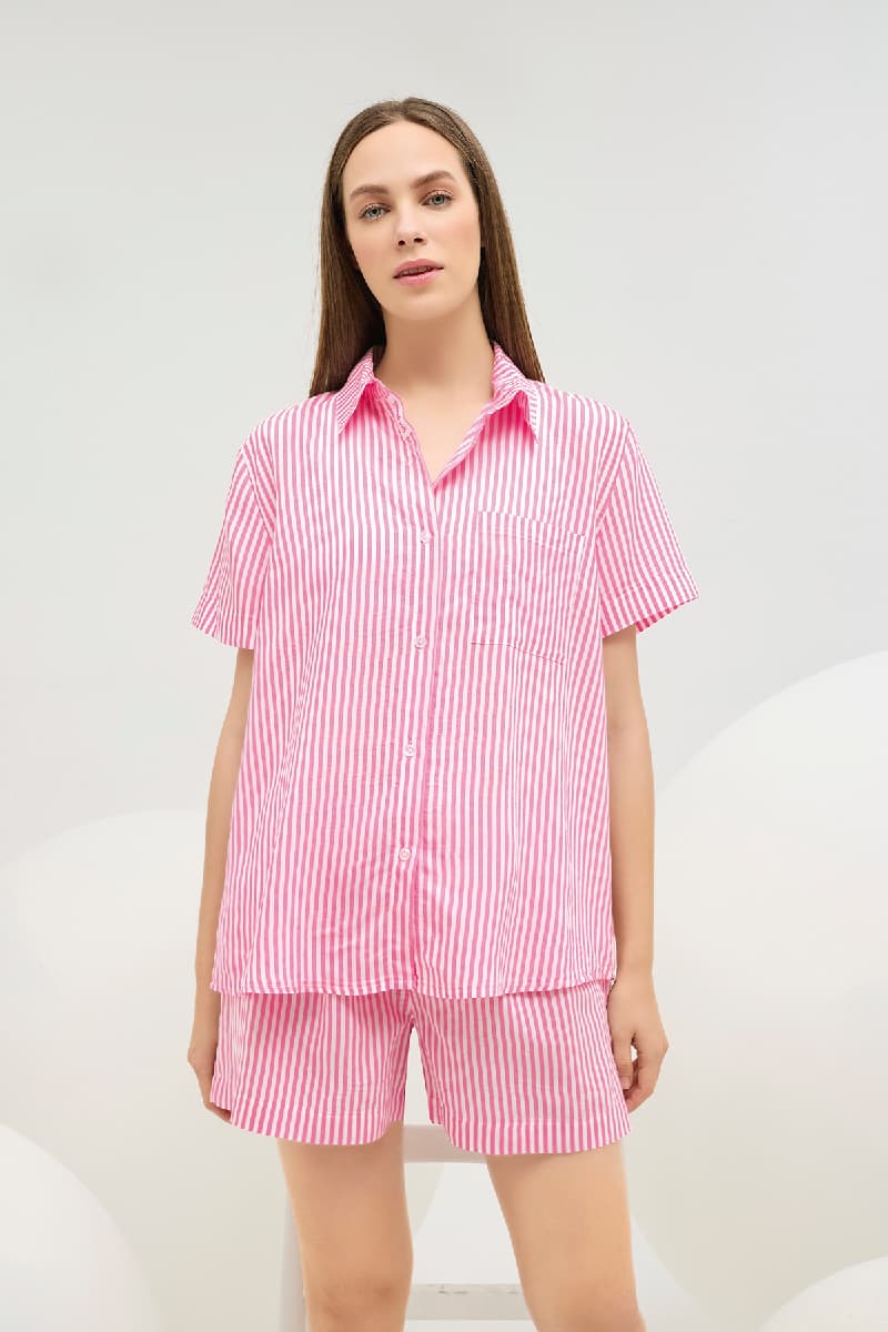 16728 Kadın Düğmeli Gömlek Yaka Şort Takım