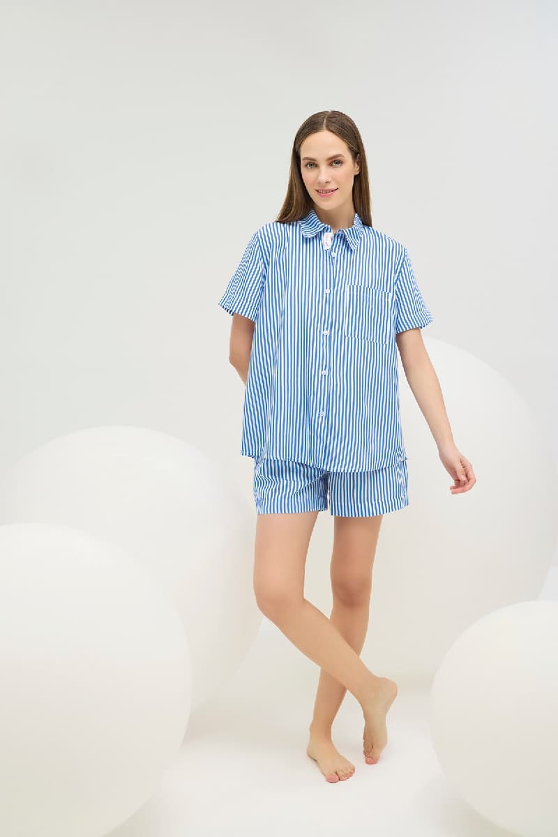 16731 Kadın Düğmeli Gömlek Yaka Şort Takım
