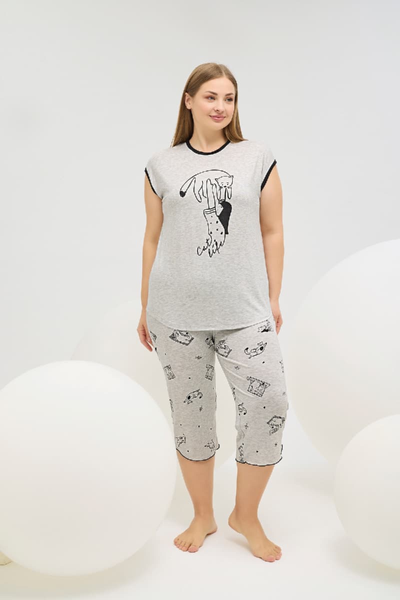 Kadın Büyük Beden Baskılı Kapri Takım