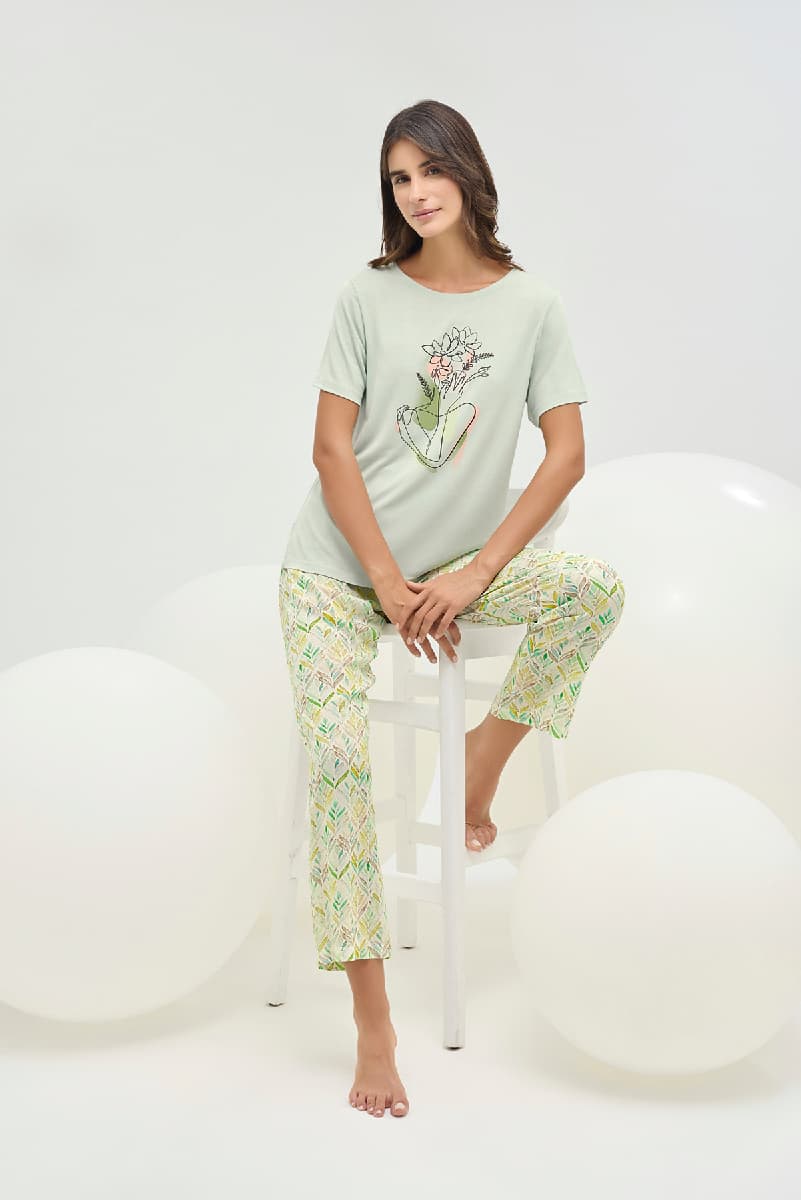 16553 Kadın Baskılı Bisiklet Yaka Pijama Takım